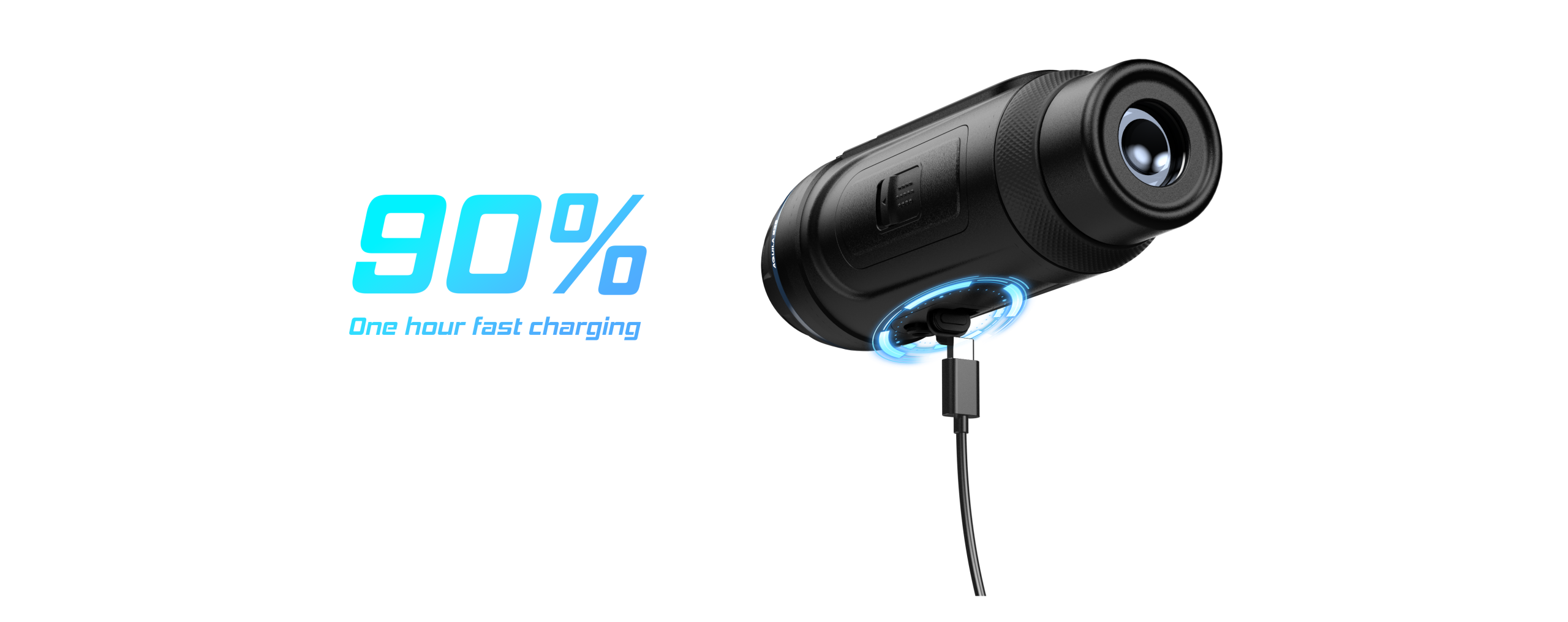 Aquila je vybavená duálnym napájaním – vstavanou a vymeniteľnou batériou, čo zabezpečuje až 10 hodín nepretržitej prevádzky. Externú batériu je možné vymeniť aj počas používania, takže zariadenie zostáva stále aktívne bez nutnosti vypnutia. Vďaka funkcii Quick Charge sa navyše dokáže nabiť na 90 % kapacity už za 1 hodinu. Nabíjací modul zároveň funguje aj ako samostatná nabíjačka, čo zaisťuje jednoduché a pohodlné dopĺňanie energie v teréne aj doma.
