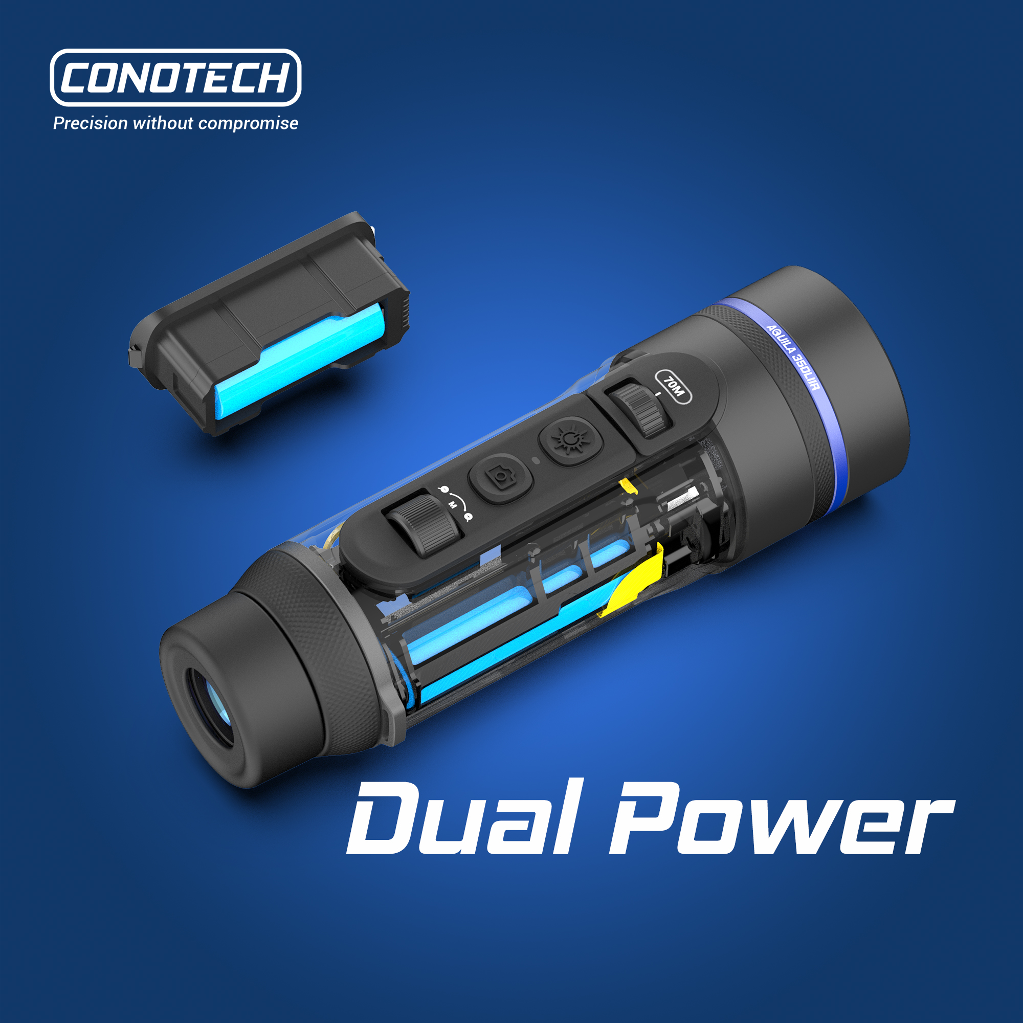 Aquila je navrhnutá tak, aby sa dala pohodlne používať aj len jednou rukou. Vďaka praktickému prstencu na zaostrovanie môžete rýchlo a presne upraviť obraz bez zbytočného presúvania rúk. Tento ergonomický dizajn je ideálny pre pravákov aj ľavákov, čo robí zariadenie maximálne užívateľsky priateľským aj v náročných podmienkach, napríklad počas lovu, alebo taktických akcií.
